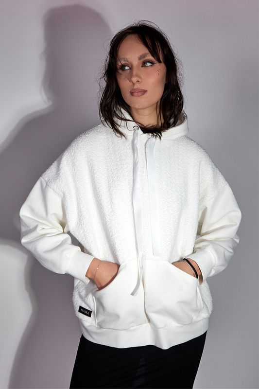 W promocjiWhite oversize hoodie with terry cloth