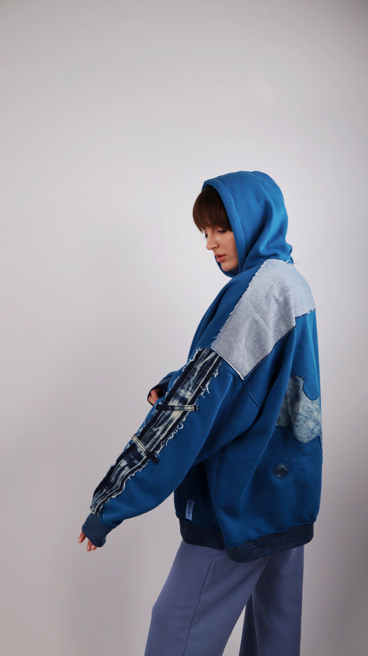 oversized blue hoodie with jeans